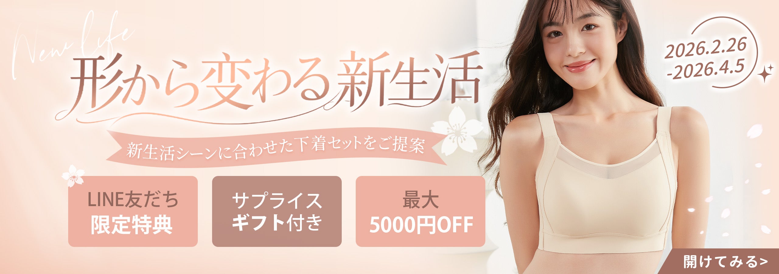 026.02.24 新生活シーズン応援フェア開催!新しい毎日に、やさしく寄り添うランジェリーを。対象アイテムをご用意の方へ、今だけのささやかな特典も。イベント期間:02.26(木)~04.05(日)