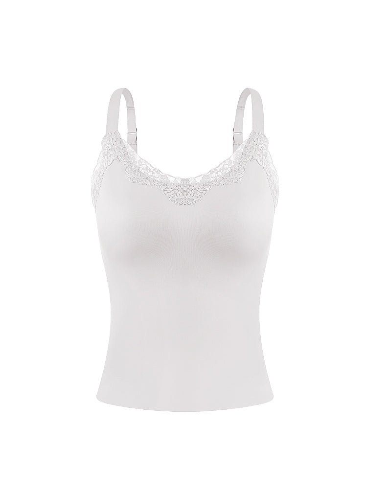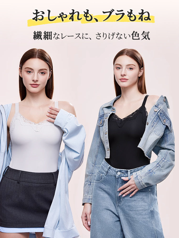 | 商品詳細 | VEIMIA キャミソール ~ カップ付きキャミブラ 合わせやすい 自然にバストメーク 毎日のコーデにぴったり ~カップ付きでブラいらず、1枚でナチュラルなシルエット!繊細なレースが首もとを華やかに、重ね着にも単品にも◎~脇まで続くサポート構造で美しい丸みのあるバストラインをキープ! |