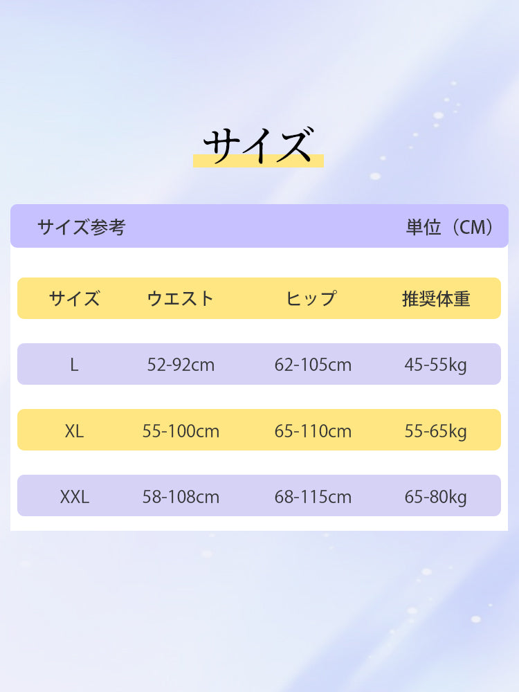 | サイズ | L(45-55kg) XL(55-65kg) XXL(65-80kg) |