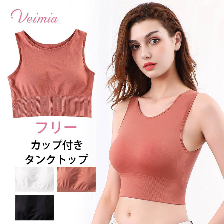 VEIMIA タンクトップ| ブラタンクトップ2イン1!ミニマリストスタイルでブラいらず〜オフィスからカジュアルまで全シーン対応!サイドサポートで脇肉スッキリ。高弾力リブ素材で一日中快適!