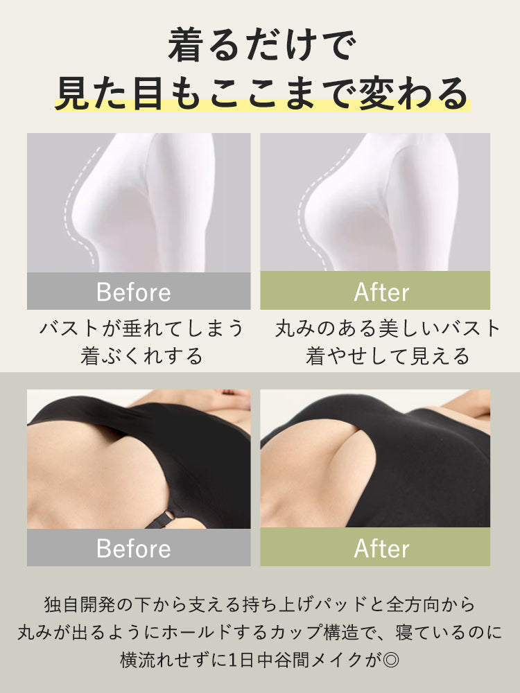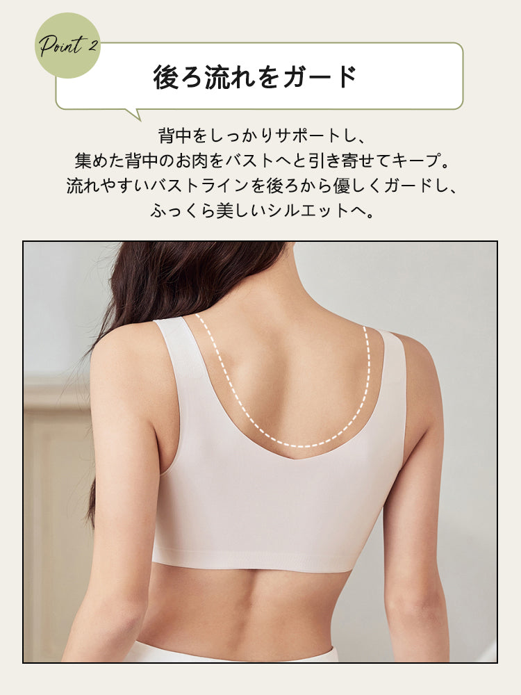 | こんな方におススメ | ・夜間の締め付け感の不安 ・健康(抗菌)と実用性を兼ね備える ・洗練されたファッションを求めたい女性 ・育乳を意識したい女性 ・通勤、長時間デスクワーク |