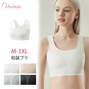【2枚セットで¥6,990円】VEIMIA さらし・和装ブラ | 強いサポート力で大きな胸をスッキリフラットに!シームレスでアウターに響かなく、二重構造で乳首の浮きも防止。メッシュ素材が通気性抜群で、一年中快適。