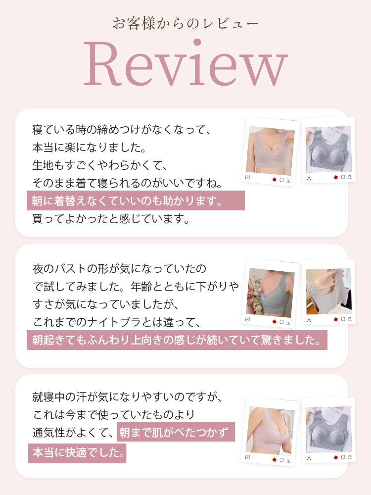 こんな方におススメ ・昼も夜も1枚で使えるナイトブラを探している方