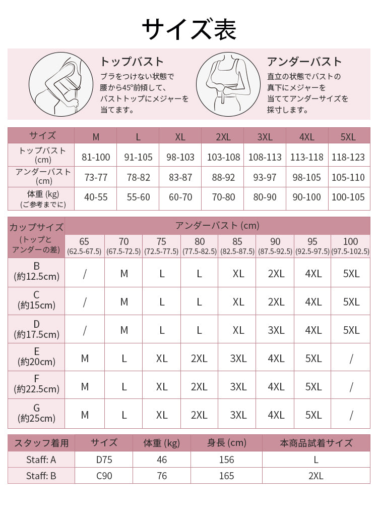 ・市販ブラがきつめの方は、普段より1サイズ上をおすすめします。
