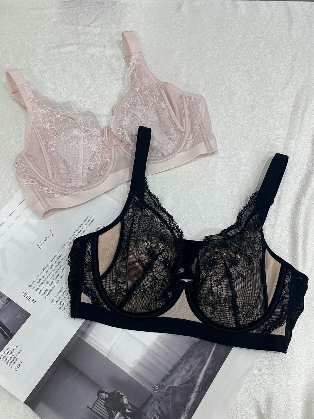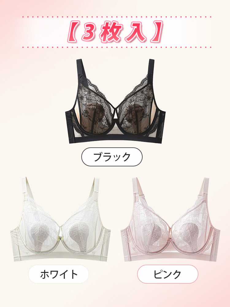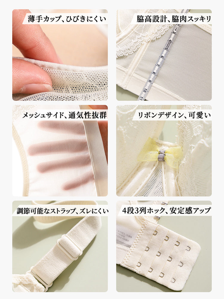 | 商品詳細 | VEIMIA レースブラ ~薄くても美しいシルエットに。フラワーレースと超薄素材を組み合わせ、自然にバストラインを整えるレースブラです。 ウサギ耳カップ構造と脇高設計で横流れを防ぎ、視覚的にすっきり見せながら、上品で女性らしいシルエットを演出します。 やわらかなレースとメッシュサイドで通気性にも優れ、快適な着け心地を叶えます。 |