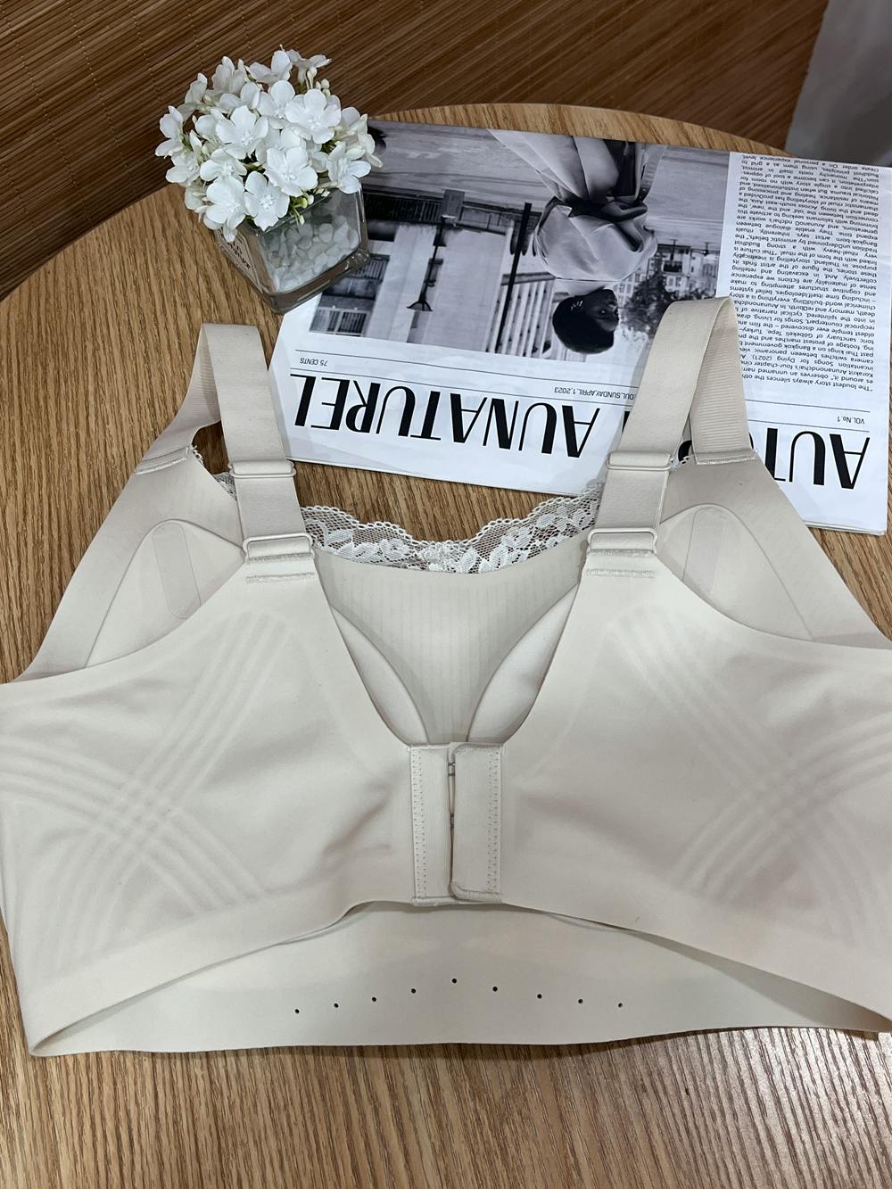 | 仕樣 | ホック:4段3列 ストラップ:調整可能・取り外し不可 ワイヤー:ノンワイヤー サイドボーン:なし |