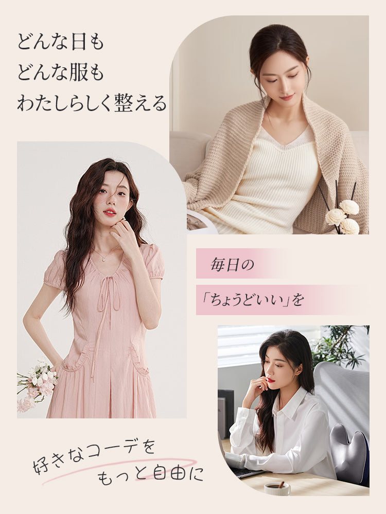 | 仕樣 | ホック:3段4列 ストラップ:長さ調節可能・取り外し不可 ワイヤー:あり(ソフトワイヤー) サイドボーン:あり(ソフトボーン) ※薄型カップとUバック設計により、脇・背中まわりもなめらかに補正します。 |