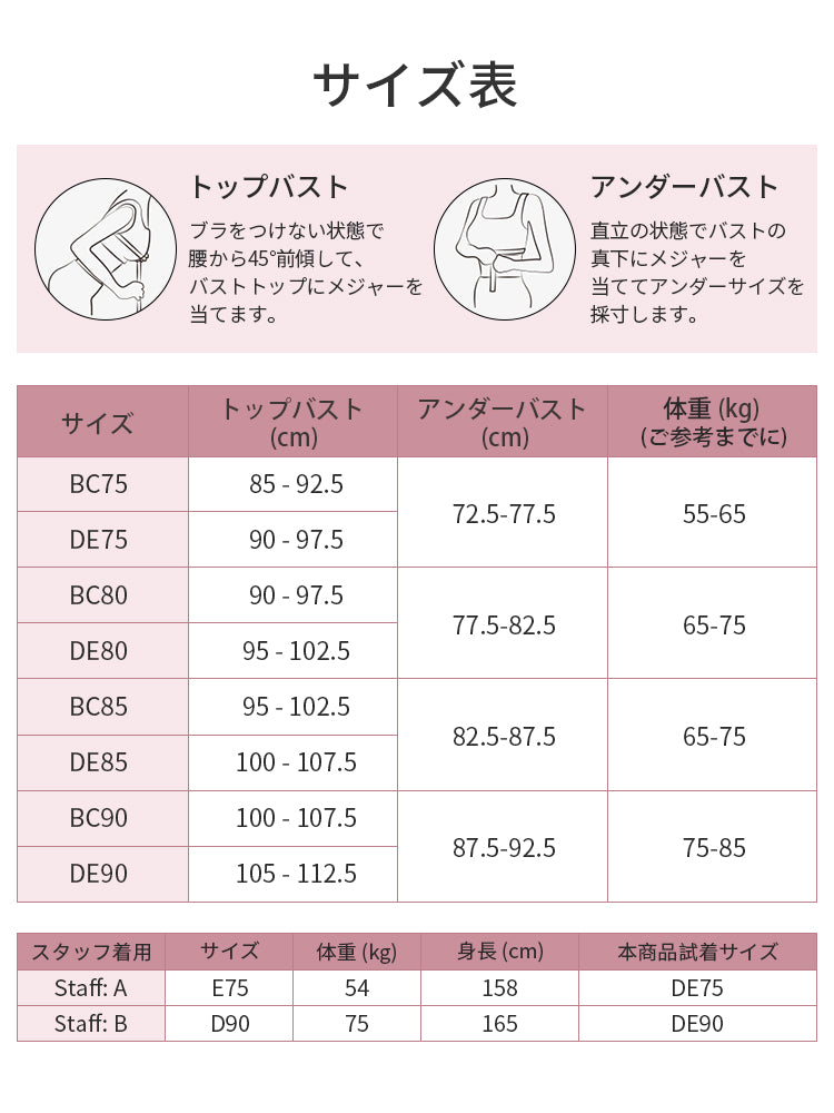 ・市販ブラがきつめの方は、普段より1サイズ上をおすすめします。