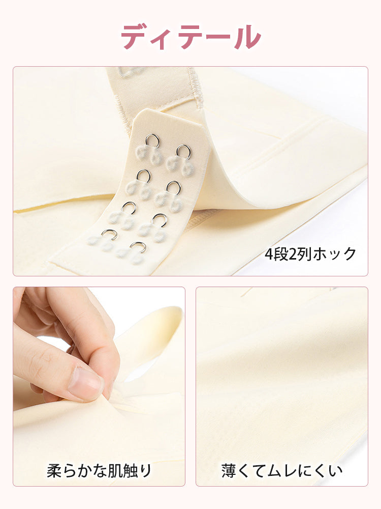 | 仕樣 | ホック:4段2列 ストラップ:取り外し不可・調整不可 ワイヤー:ノンワイヤー サイドボーン:なし |