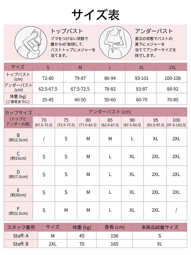 ・市販ブラがきつめの方は、普段より1サイズ上をおすすめします。