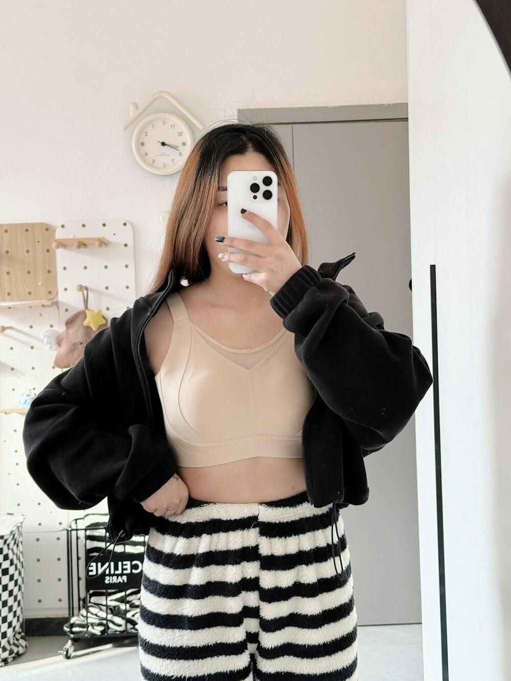 | 商品詳細 | VEIMIA 胸を小さく見せるブラ ~ やさしく支えて垂れを防ぎ、自然にすっきり細見えを叶えるノンワイヤーブラです。胸元には上品なメッシュ素材を採用し、バストトップをさりげなくカバーしながら通気性も確保。脇高設計とW字型サポート構造により、バストの横流れを抑え、日常使いからビジネスシーンまで安心して着用できます。 |