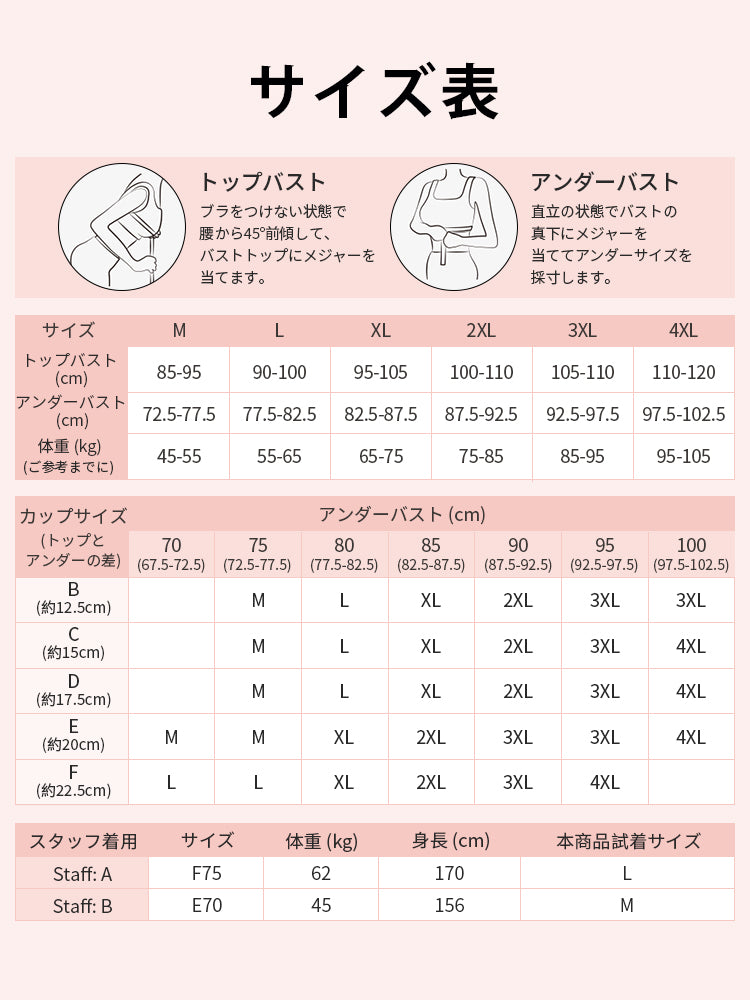・市販ブラがきつめの方は、普段より1サイズ上をおすすめします。