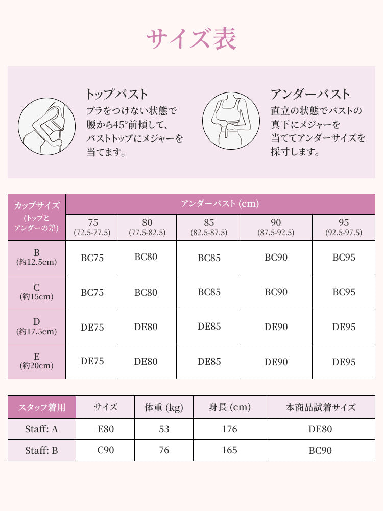 ・市販ブラがきつめの方は、普段より1サイズ上をおすすめします。