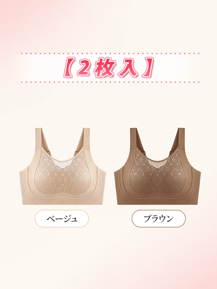 | こんな方におススメ | ・バストをしっかり包み込み、小さく見せたい方 ・締め付け感や圧迫感のないノンワイヤーブラを求める方 ・柔らかく軽い着け心地を重視する方 ・持ち運びしやすく、型崩れしにくいブラを探している方 |