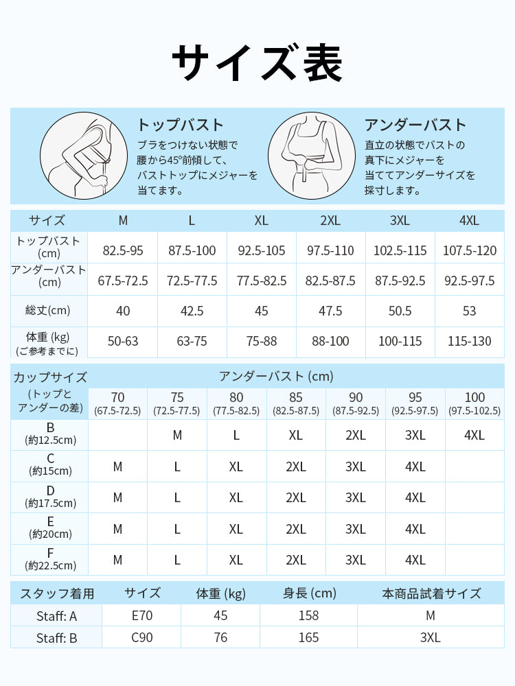 ・市販ブラがきつめの方は、普段より1サイズ上をおすすめします。