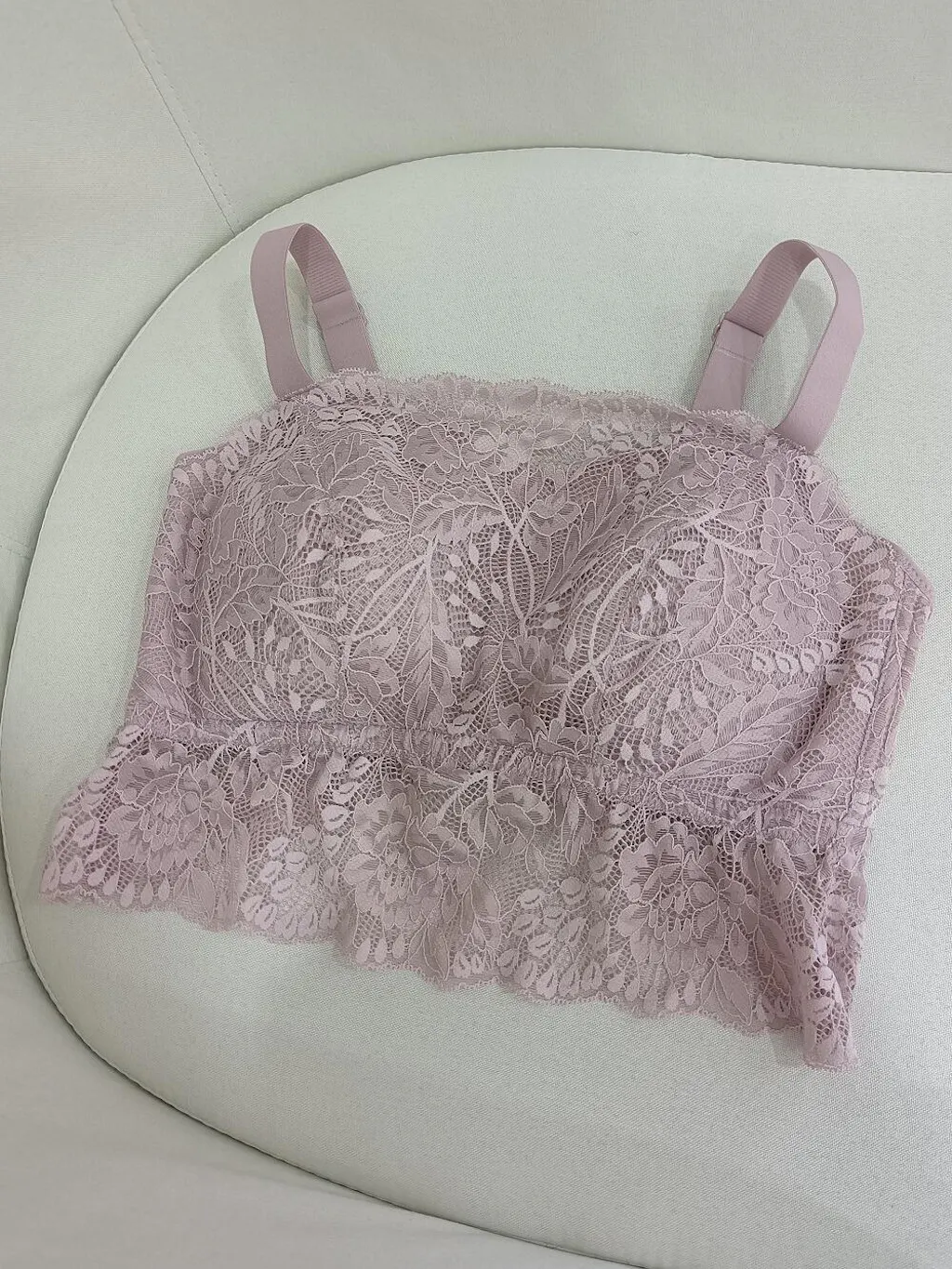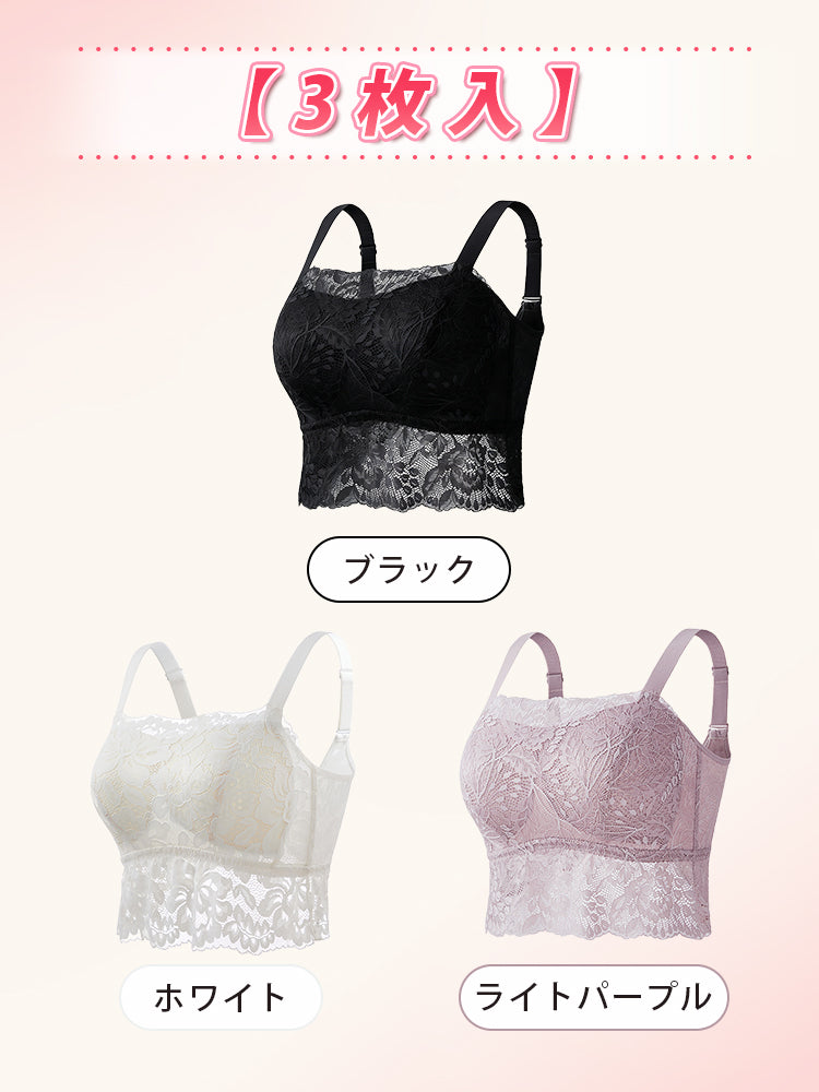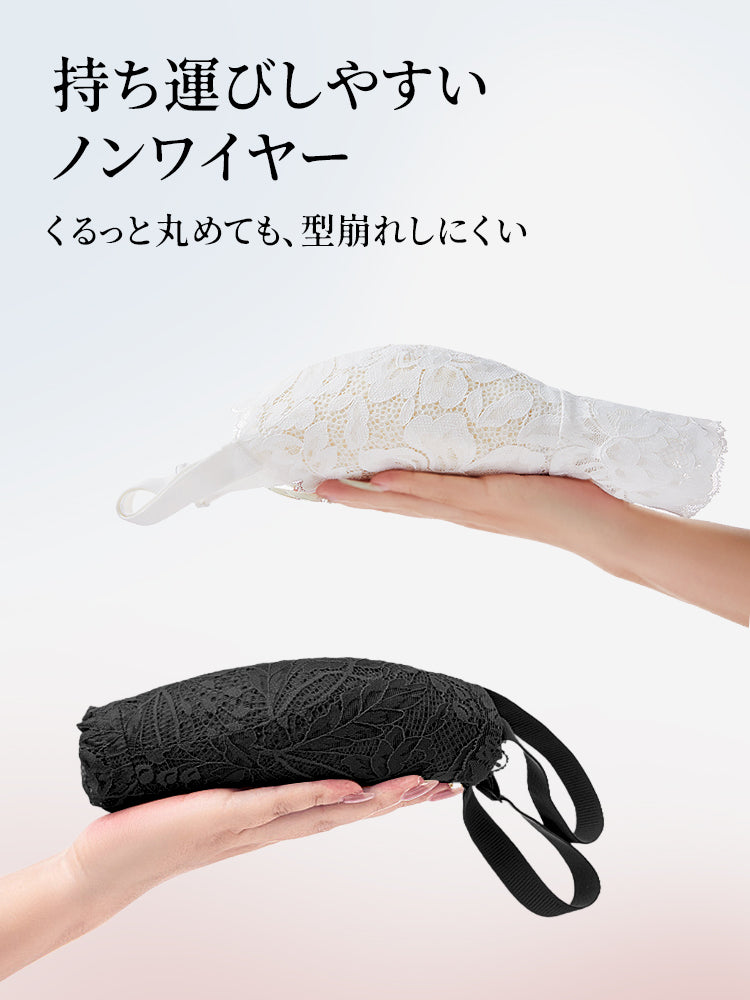 | 素材 | ライトパープル・ブラック: ・サイド部分:ナイロン77.6% ポリウレタン22.4% ・カップ内側:モダール85.9% シルク8.3% ポリウレタン5.8% ホワイト: ・レース部分:ナイロン90.6% ポリウレタン9.4% ・カップ部分:ナイロン76% ポリウレタン24% ・カップ内側:綿100% |