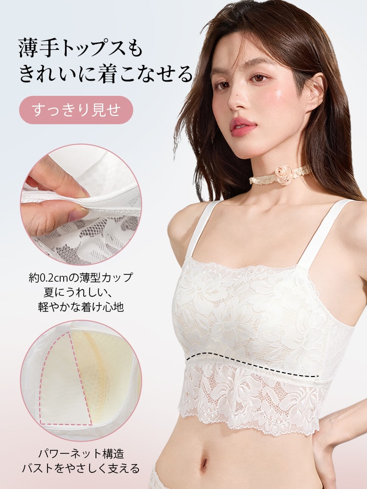 | こんな方におススメ | ・レースキャミソールで背中をきれいに見せたい方 ・見せるインナーとして着回ししたい方 ・ノンワイヤーで快適に過ごしたい方 ・バストをすっきり見せたい方 ・夏でもさらっと快適なカップ付きキャミを探している方 |