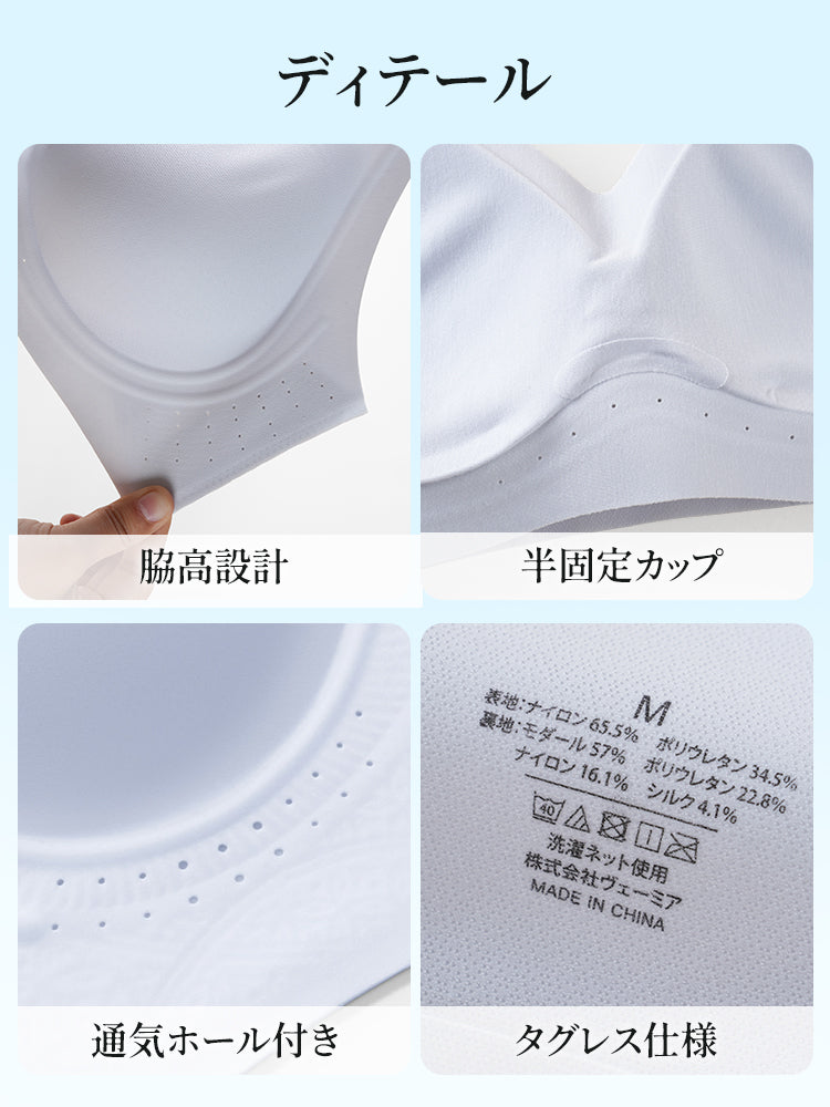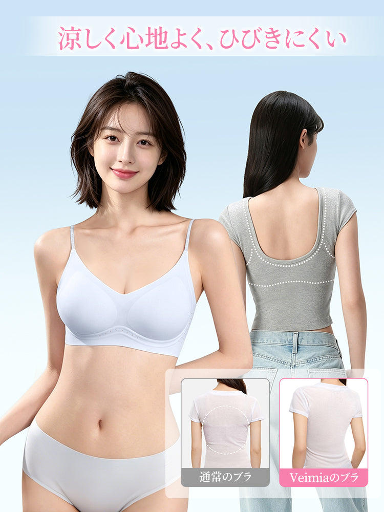 | 商品詳細 | 【2枚セットで¥6,980円】VEIMIA シームレスブラ | 接触冷感シームレスでひんやり快適!素肌感覚ソフトサポート&目立たない細ストラップ〜薄手トップスに透けずシルエット美を実現。 |