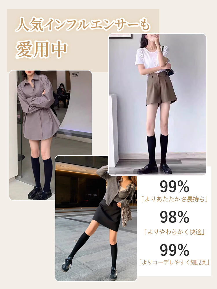 | こんな方におススメ | ・美脚効果を求めつつ、締め付け感のないソックスを探している方 ・長時間履いてもズレにくいソックスを好む方 ・敏感肌でソックスのチクチクが気になる方 ・コーディネートしやすいデザインを重視する方 ・秋冬の冷え対策やデイリー使いにおすすめ |