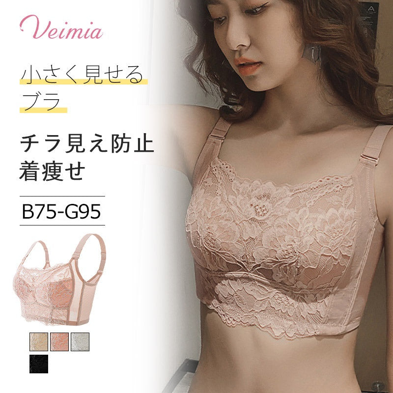 VEIMIA【レースたっぷり!胸を小さく見せるブラジャー】グラマーさんのお悩みをすっきり解消!大きなバストをすっきり整え、やせ見えシルエットを叶える。