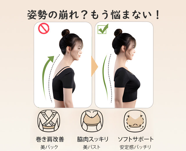 矯正ブラ:猫背矯正/バストと姿勢を引き上げ/垂れ胸を防止