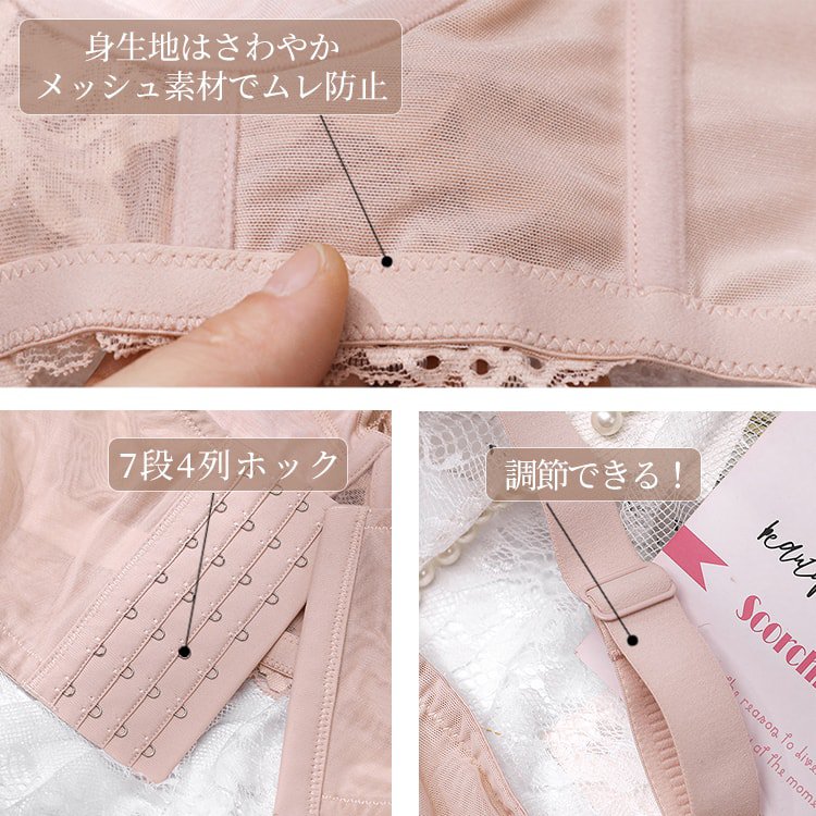 | 仕樣 | ホック:7段4列 ストラップ:取り外し不可 ワイヤー:柔らかいワイヤー サイドボーン:あり |
