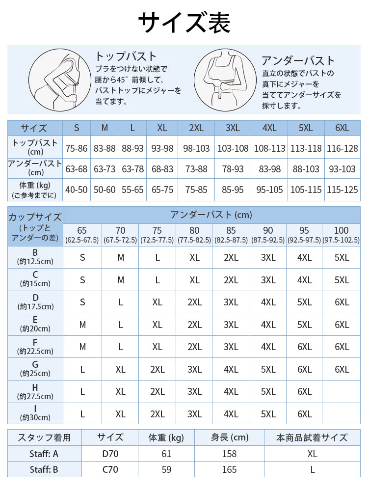 ・市販ブラがきつめの方は、普段より1サイズ上をおすすめします。