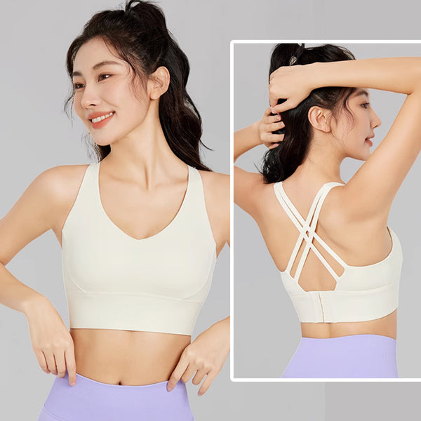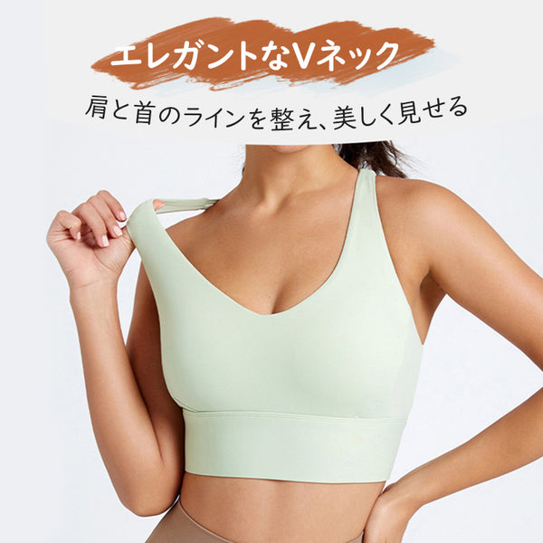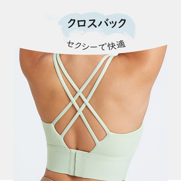 VEIMIA 美バック・スポーツブラ パッド付きのクロスバックスポーツブラ。おしゃれなバッククロスデザインで後ろ姿が可愛くてセクシーに見せる。吸湿発散性に優れ、汗をかいても蒸れない。サポート力も強くて、運動中の胸の振動を効果的に緩和! |