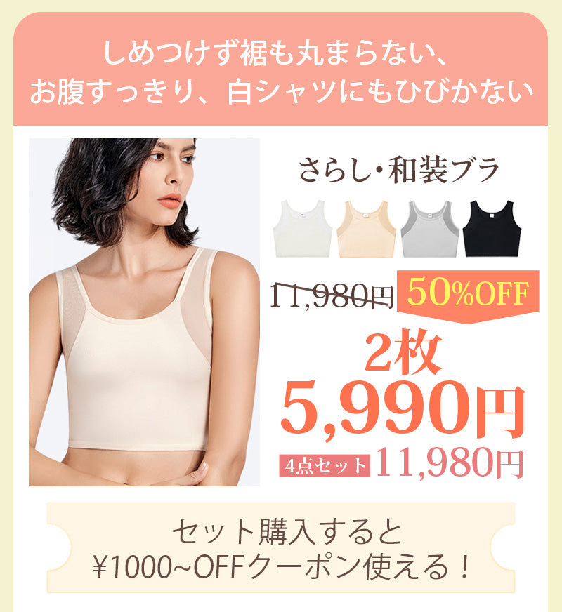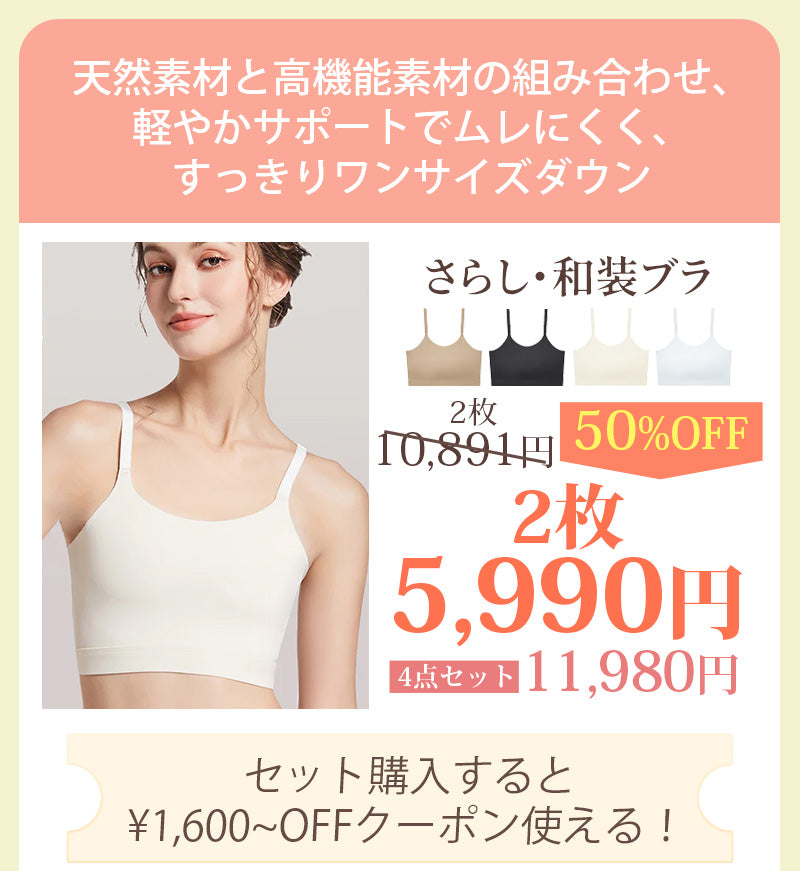 普段ご使用のブラサイズを目安にお選びいただけますが、和装ブラは「胸をコンパクトに整える」ことを重視しているため、サイズに迷った場合、お気軽にカスタマーサポート(service@veimia.com・LINE)までお問い合わせください。初めての方も安心してご相談いただけます。