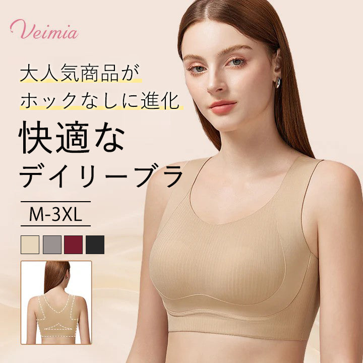 【2枚セットで¥6,980円】VEIMIA 垂れ防止矯正ブラ | 快適&肌に優しく、極上の着け心地でまるで何も着ていないかのよう!美しいバスト矯正を実現し、強力なソフトサポートで垂れ防止と自然な形を整える効果抜群。脇肉と背中の贅肉をしっかり包み込むシームレスなフィット感が特徴で、どんな服装にも響かずスムーズなシルエットを演出。