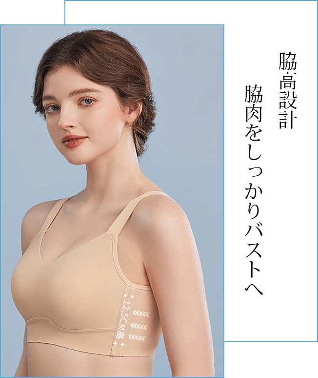 久しぶりにちゃんとした小さく見せるブラが欲しくて購入しました。脇の高さがあるし、優しく包んでくれる感じでとっても気に入りました!!!シームレスデザインでピタっとした服にも響きません。最高です!リピ決定です!!!