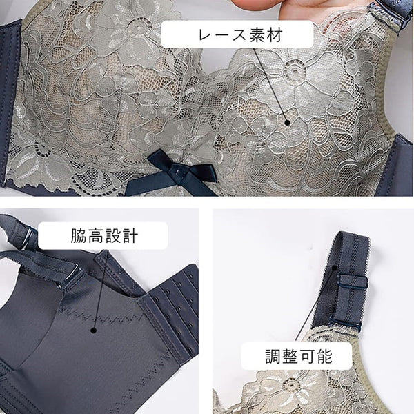 | 商品詳細 | VEIMIA【胸を小さく見せるブラ】小さな胸を「補整」、大きな胸は「スマートに」。バストの悩みは人それぞれ、そんな理想のバストを叶える!美しさと機能性を兼ねた3Dレース、やさしい肌ざわり。すき間をつくらずパカパカしない。摇れをおさえて、バストラインをキープ。 |
