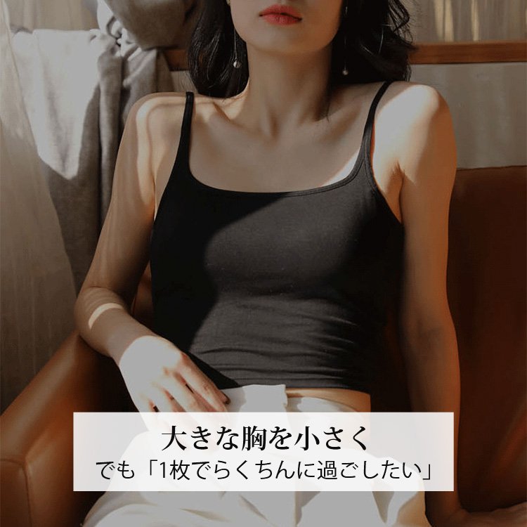 | 商品詳細 | VEIMIA【カップ付きキャミソール 胸を小さく見せるインナー】グラマーさんのお悩みをすっきり解消!大きなバストをすっきり整え、着やせシルエットを叶える!「よりアウターの着こなしを楽しんでいただきたい」という願いから、シンプルで使いやすいスタンダードなデザインになっている。大人気のバックオープンブラトップ・キャミソールを楽しもう! |