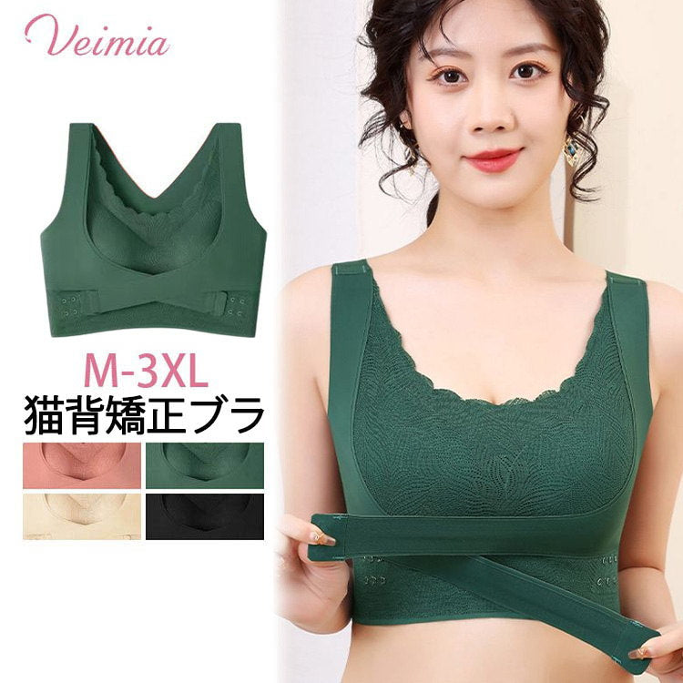 VEIMIA【猫背矯正ブラ】クロスフックとサイドのベルトが横流れを軽減し、しっかりバストメイクしてくれる美胸ブラ。