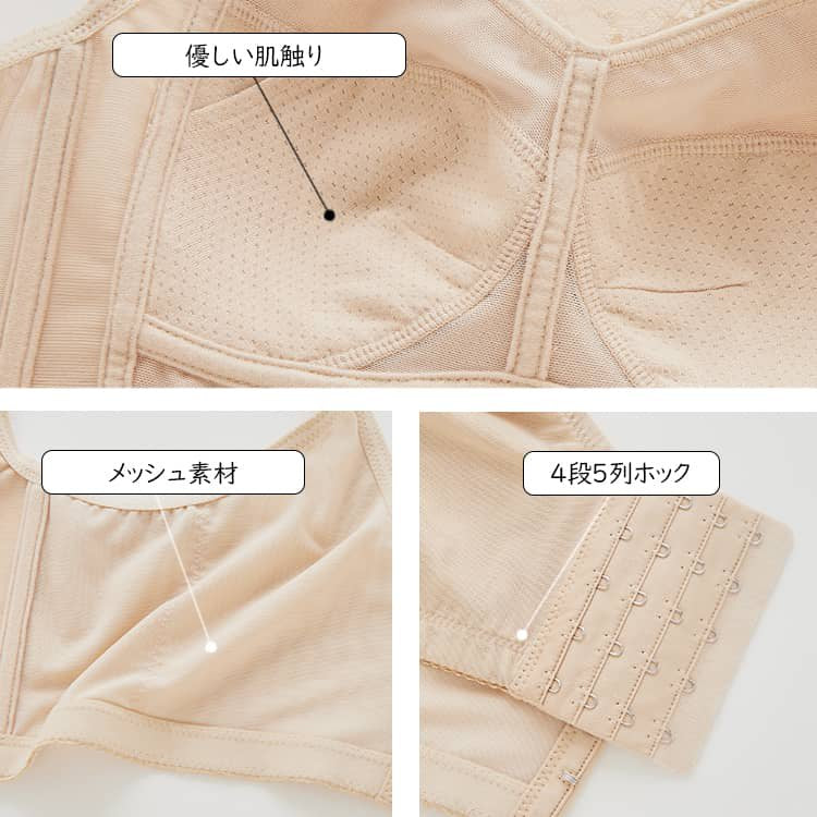 | 仕樣 | ホック:4段5列 ストラップ:取り外し可 ワイヤー:ノンワイヤー サイドボーン:なし |
