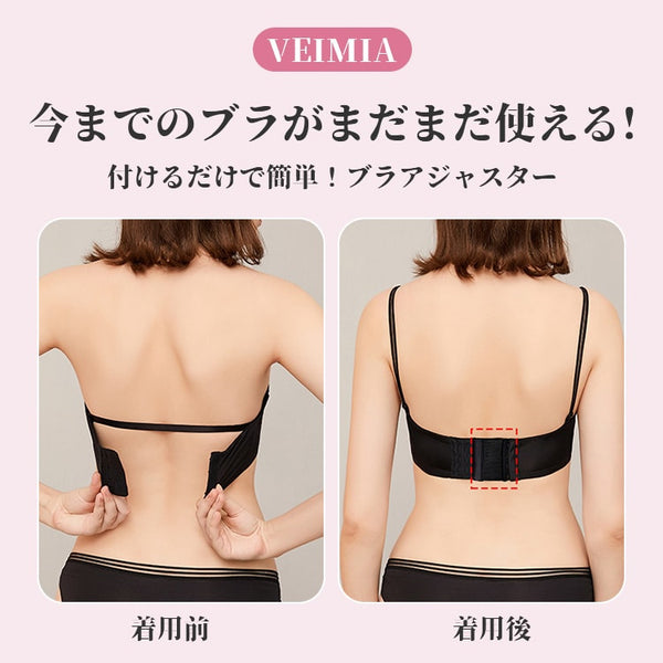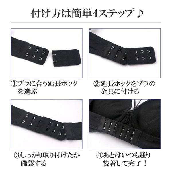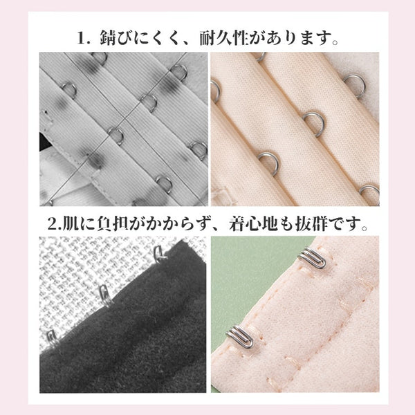 | 商品詳細 | VEIMIA【伸びる延長ホック・4段4列】同じサイズのブラジャーを購入したのに、アンダーがきつく感じる時や、 疲れていたり、体がむくんでいて、ブラジャーの締め付けをゆるくしたい時に 役立つブラジャーのアジャスターです。ホックに着けるだけで簡単にアンダーバストをサイズアップしてくれる♪ |