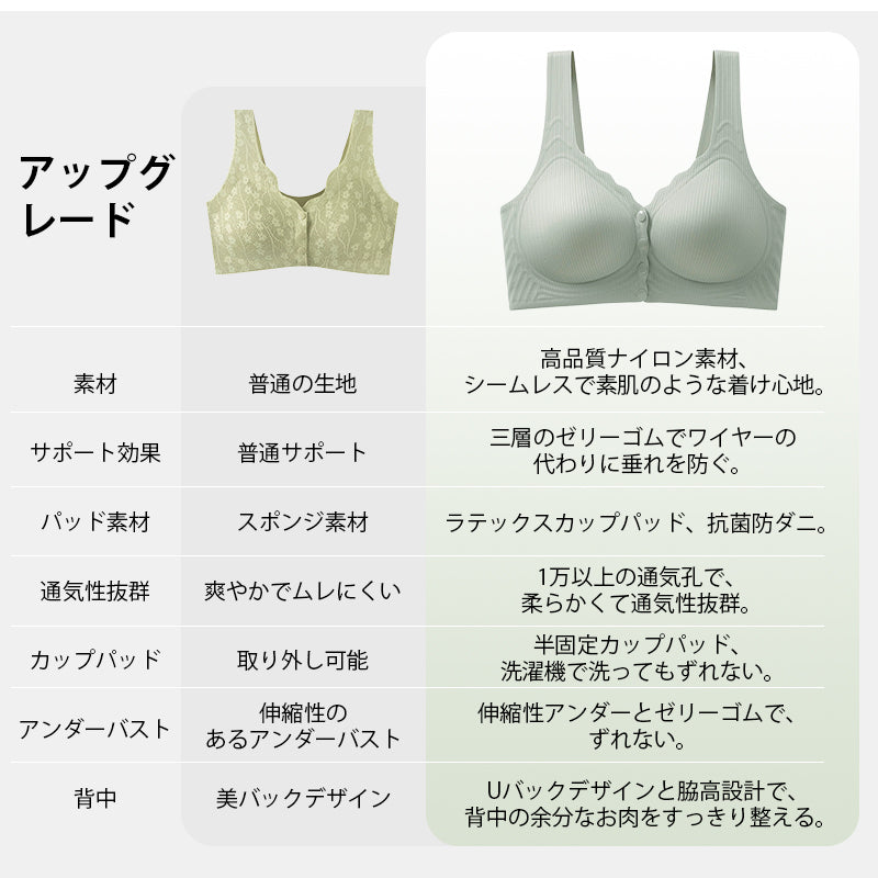 商品詳細 VEIMIA シームレス前開きブラ 簡単に着脱、肩に優しい!前開き設計で育児/介護時も楽々操作!柔らか滑らかなストレスフリー素材軽量で通気性抜群伸縮性ストラップでフィット感持続♪ノンワイヤーの快適さを体感してみて!