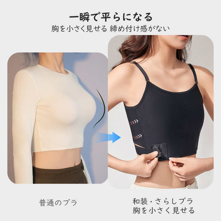 VEIMIA 和装・さらしブラ バストラインをなだらかにスッキリ補整し、胸をコンパクトに見せる。脇高設計で脇肉を引き締める。通気性も良いので、夏でもムレにくい。抜群の伸縮性で長時間の着用もらくらく!バストの膨らみを優しく抑える。 |