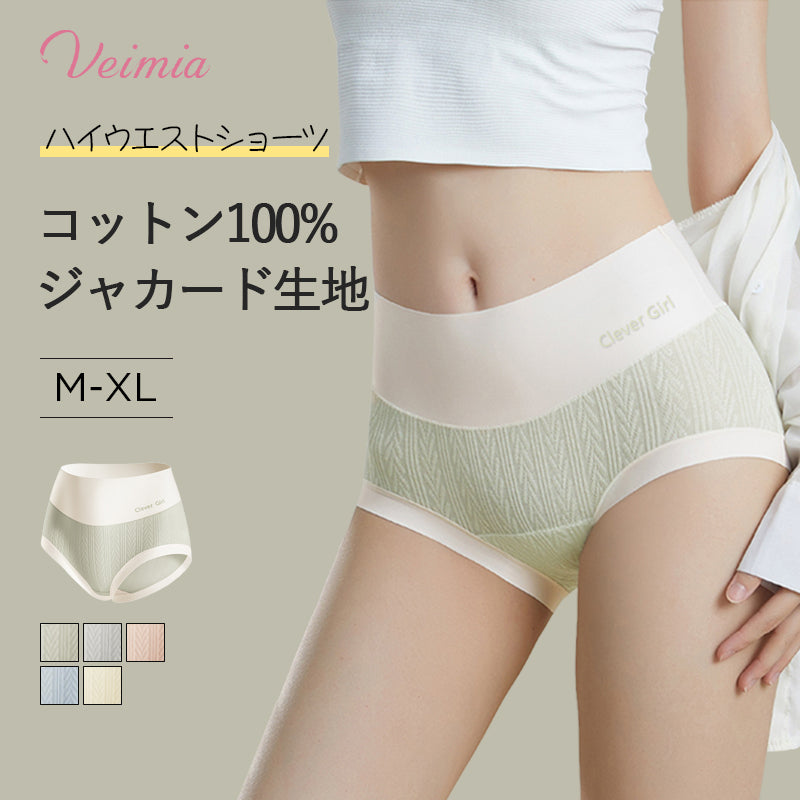 | 商品詳細 | VEIMIA ハイウエストショーツ コットン100%のジャカード生地。伸縮性に優れ、身体のラインにぴったりフィット。5A抗菌クロッチでデリケートゾーンをしっかりガード!安心で快適て履き心地を提供! |