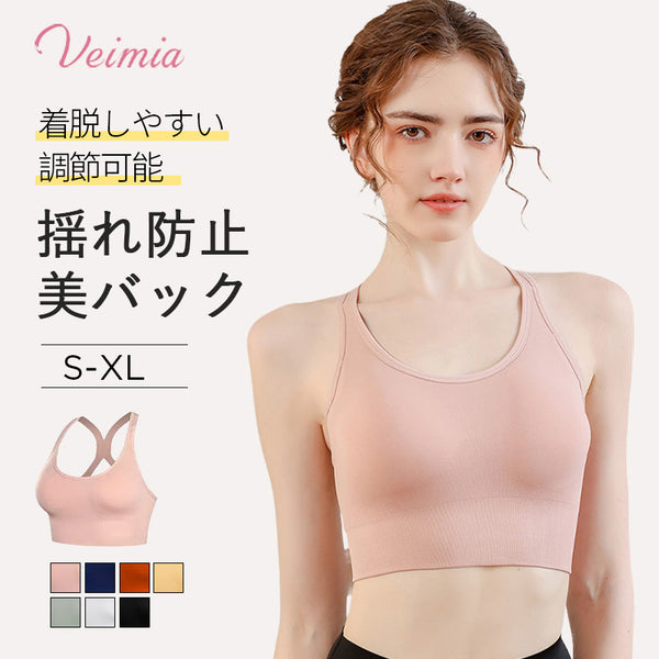 【2枚セットで¥4,990円】VEIMIA【スポーツブラ】運動時に“ゆれ”からバストを守るトレンド新作!交差ストラップで背中を美しくみせる。