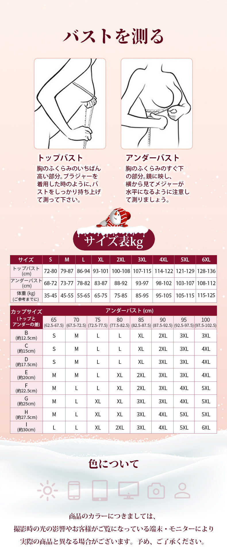 ・市販ブラがきつめの方は、普段より1サイズ上をおすすめします。